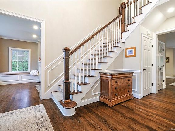 Acceptable Offer - No More Show. Impeccably maintained four-bedroom colonial on beautifully manicured property on quiet cul-de-sac street. A 2-story entry leads to living room with a gas fireplace that can be an office or library, formal dining, butler's pantry, eat-in kitchen which opens to the family room with sliding glass door to oversized bluestone patio, office, garage access and back staircase to bonus room and 2nd level. The upstairs boasts a large primary bedroom suite complete with two walk-in closets, bathroom with whirlpool tub, oversized stall shower and separate water closet, three additional bedrooms one en-suite and the other two share a Jack and Jill bathroom, laundry room and walk-up stairs to large attic. The lower level is unfinished but has been plumbed for a bathroom and has windows and a door out to the backyard. Close to town and a quick walk to the North Castle Town Pool.