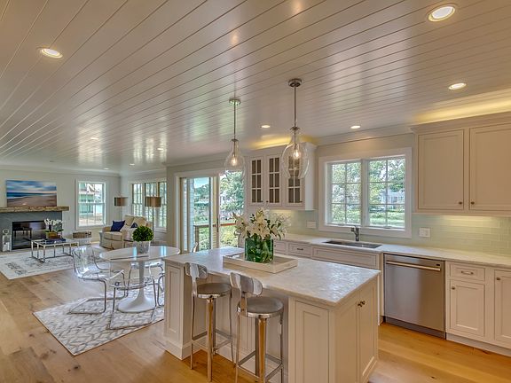 Gorgeous waterfront new construction not too big, not too small. Light, Bright, Airy. Enjoy this sophisticated yet casual 4-5 BR, 4.5 BA home 2 blocks to Rowayton village and Bayley Beach. Relax on your deck & balconies and watch beautiful waterfront sunsets. Open Kitchen/Family rm w/fplc & sliders out to oversized nautical deck overlooking the water. Kitchen w/stainless Subzero fridge, Wolf stove, iceberg quartzite counters, island, ship lap ceiling. butlers pantry w/wine cooler, formal DR w/tray ceiling. Wide plank oak floors throughout. Paneling & crown molding detail abounds. Tandem 2 car garage. The best of all worlds. Come see this happy home!