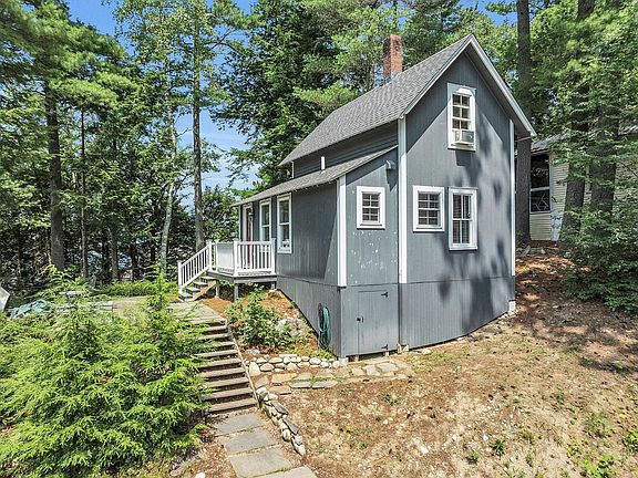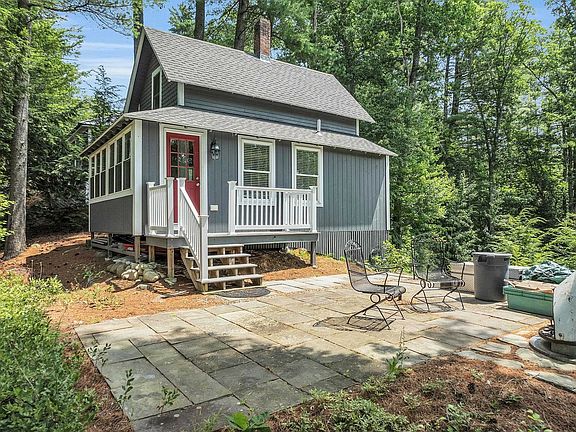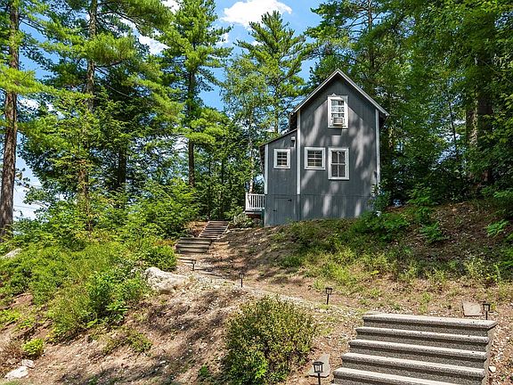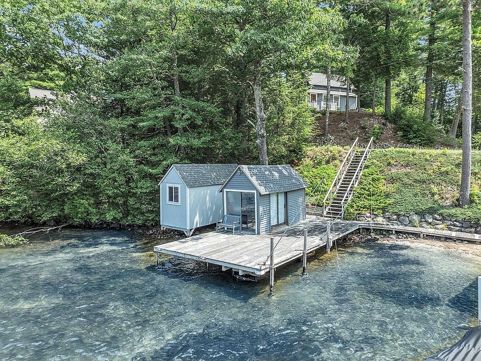 Welcome to 14 Farmington Road in Alton, NH—a renovated waterfront retreat blending modern luxury with natural beauty. Nestled along Loon Cove at Lake Winnipesaukee, this property boasts 43 feet of water frontage with stunning views from your private dock and beach, all without the million-dollar price tag. Ideal for those seeking a simpler lifestyle, this property is designed for efficiency and comfort. It features energy-efficient windows, modern lighting, and high-quality finishes. The open-concept layout maximizes space, seamlessly connecting the living, dining, and kitchen areas. The kitchen includes premium thermo-wrapped Martha Stewart cabinets, Corian counters, ceramic tile, & stainless steel appliances. The airy bedrooms upstairs feature vaulted ceilings, offering a blend of modern comfort and classic charm. The bathroom showcases contemporary fixtures, w/subway tile accents. The property also includes a boat house/cabana, waiting for your personal touches, it offers convenient storage for your gear. The large dock, walkway and a private beach is perfect for boats and watercraft. The crushed stone double driveway provides easy access for friends and family. This cottage offers a peaceful retreat with convenient access to local amenities, shops, dining, and recreational activities. Do not walk property without a real estate agent - onsite cameras are active.