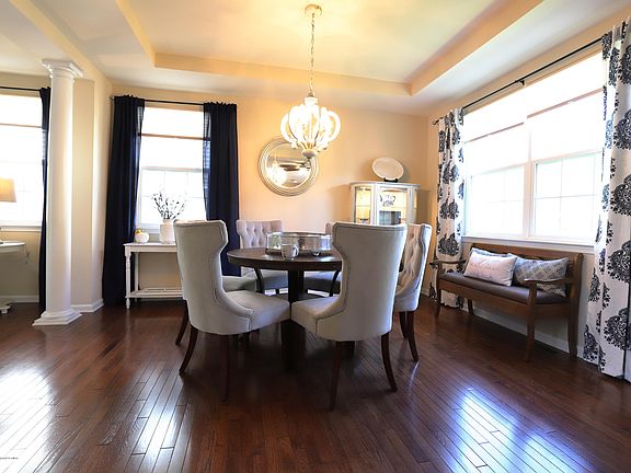 Immaculate Nantucket Country Manor Colonial tastefully appointed Bright Open floor plan in Cottage Gate. Features 9' ceilings, recessed lighting, hardwood flooring on first level, dec molding, eat-in gourmet kitchen, center island w/granite counters, upgraded cabinets and kitchen appliances, slider to deck. 2 story entry streams natural light. Two columns open to living and dining rooms w/2 chandeliers. Family room with gas f/p. Spacious Master en suite, tray ceiling, luxurious bath w/double sinks, lg soaking tub, separate shower and walk in closet. 2nd Fl Hall Bath has sep shower/tub room. Full finished basement with storage room and lg closet. Great Location! Minutes to ferry. Close to Shore Beaches. Luxury Living in desirable Navesink Area! This home IS move in ready!