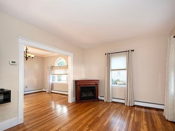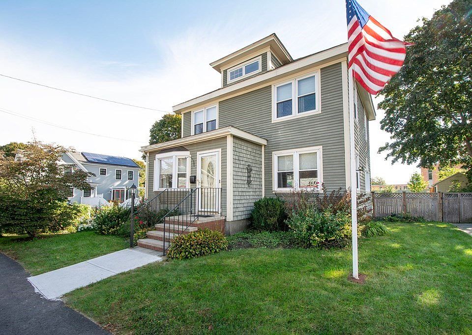 Welcome to 14 Fisk Ave.! Great location for this 3 bed, 1.5 bath Colonial with hardwoods through out! The front entry is large and could also be an office/mud room.There is good size living room with gas fireplace. The updated kitchen has an island and is open to the dining room, which has lots of natural light! There is a half bath on the first floor. A slider from the kitchen opens to a backyard deck which overlooks the yard and swimming pool. The yard is fenced in and has a storage shed for lawn/pool equipment. The second floor has 3 bedrooms all with hardwoods. There is a full bath on the second floor as well. The house has newer thermo -pane windows thru out, the first floor has central air. The location is in walking distance to Legion Memorial Field. A short commute to Boston with MBTA and commuter service available. Showings begin at the Open House Saturday & Sunday 12-2. Don't miss out on making this your new home!