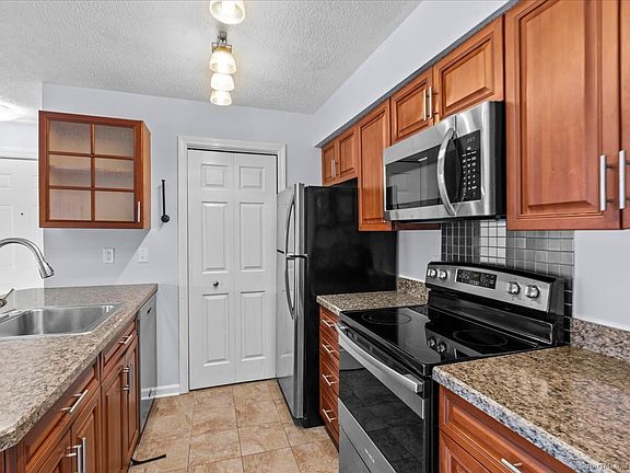 First floor living! This is a beautiful first floor condo with a walk-out patio and tons of storage! It features an open floor plan, stainless steel appliances, and a gorgeous custom-built mantle surrounding the cozy fireplace to enjoy on those cold winter (and spring) days. There is new flooring throughout (with the exception of the tiled kitchen, tiled bathroom, and hardwood walk-in closet). The master bedroom features a very large walk-in closet and has a door leading into the full bathroom for close access. There is also built-in storage underneath the window in the master bedroom. The spare bedroom has beautiful French doors, which can easily be utilized as an office or workout room, the options seem endless! There is a spacious patio and this side of the building receives so much sunlight, which makes for enjoyable mornings & afternoons in the warm summer sun and crisp fall months. There is a large storage closet/shed right outside of the patio door, making it very convenient for close storage. All Utilities were updated last year as well. This association allows multiple pets and there's a dog park only 2 miles away! There are fantastic walking/biking trails within walking distance; right down on the hill on West Lake Dr. There is assigned parking, and this spot is the first one next to the main door - making shopping/grocery trips no hassle at all! There is an abundance of natural sunlight throughout, making it a very bright and cozy space. It truly is a must-see!! Stove, Oven, Microwave, refrigerator, dishwasher 2018 Washer, Dryer 2019 A/C Unit, Furnace, Hot Water Tank 2020 Floors 2024 Dryer Vent Cleaning 2024