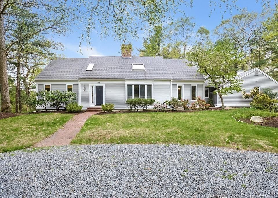 Welcome to historic Tinkertown! Enjoy easy living in this expanded Cape featuring sought after first floor master suite with walk in closet and full bath.This versatile home boasts a light and bright open floor plan. The kitchen with white cabinetry is accented with granite, stainless appliances, and is open to a cozy family room with brick fireplace and built-ins. Step down into the cathedral sunroom with skylights and a wet bar which opens to an entertainment sized deck overlooking the private back yard abutting conservation land. Soaring ceilings in the living room are enhanced by built-ins, a fireplace, skylights and is open to the second story which offers three spacious bedrooms, office/playroom and a full bath. Oversized windows and skylights allow natural light to flow throughout the home. The lower level has additional storage, cedar closet and expansion possibilities. Centrally located with easy access to highway, shopping, cranberry bogs and walking trails! Welcome home!