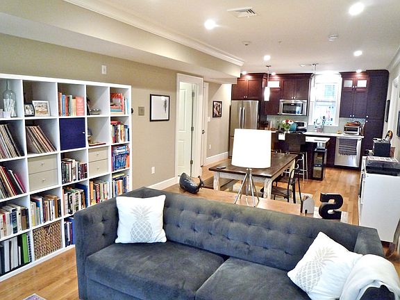 Be the first tenant to live in this recently renovated two bedroom, two bathroom residence located in sought-after Charlestown. The layout features 961 square feet of living space with high-end finishes, custom crown molding and white oak flooring throughout. The chef?s kitchen, which flows into the dining and sun-filled living space, is beautifully designed with white quartz countertops, maple cabinetry, tiled backsplash, stainless steel Bosch and Electrolux appliances and an island with bar seating. The master bedroom has a spa-like bathroom. Amenities offered are central air conditioning, an in-unit washer/dryer, and a wonderful private roof deck with city views. Also, plenty of storage with a walk in closet in the bedroom and coat closet in the front space. Take the 92 bus direct to downtown Boston, just across the street!