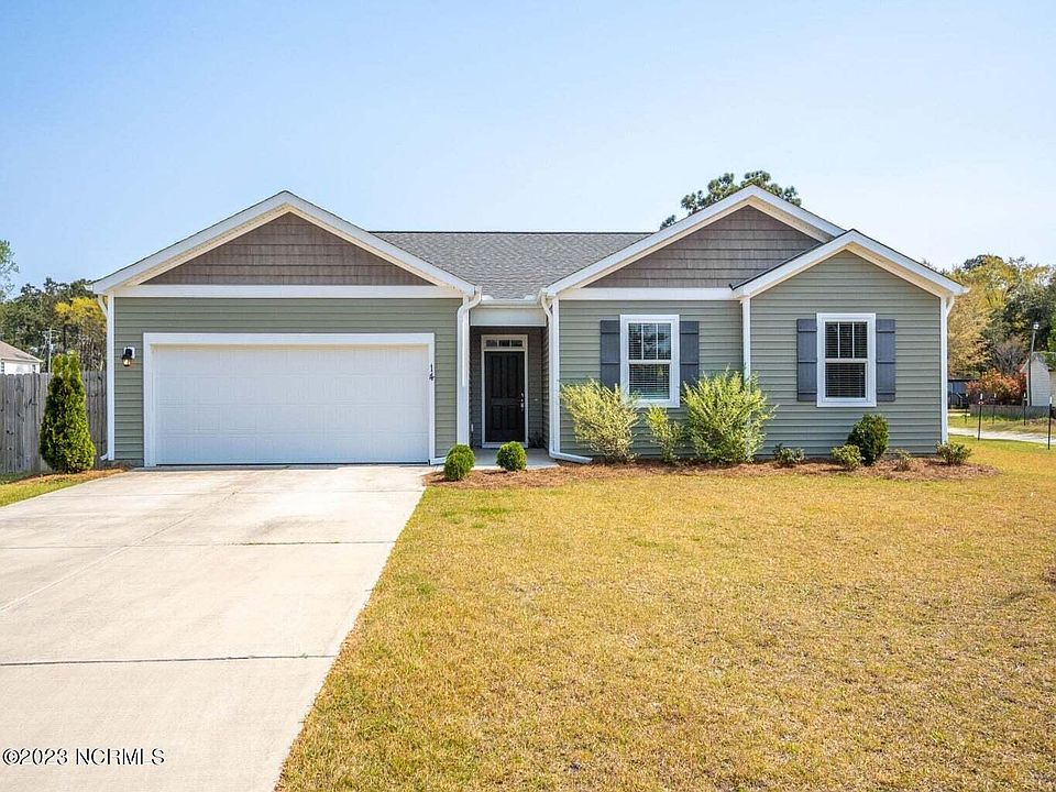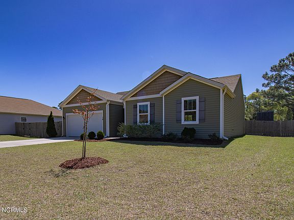 Welcome home! Lovingly cared for one-story home in the heart of Hampstead with sweeping views of green landscape and open concept living, this .36 acre 3-bedroom 2-bath home is close to the incredible Topsail Island beaches, intracoastal waterway, Olde Point Country Club, shopping, restaurants, schools, places of worship, and a short drive to Surf City. Additionally, it is conveniently located near Marine Corps Base Camp Lejeune, Marine Corps Air Station New River, and Stone Bay. As if its proximity to key locations was not enough, it is within the Pender County Topsail School District! At 1747 heated square feet, this home welcomes you to a large driveway attached to a covered, private entryway on a corner lot. Exterior features include a whole home solar system, a large back patio, and a fully fenced backyard! Inside your new home, the single story offers open lines of sight between the living room, dining room, and kitchen. Features include recessed lighting, a large kitchen island, a 2-car garage, custom board and batten, stainless steel appliances and a convenient pantry. Two sizeable bedrooms share a separate wing of the home directly off the living space. The master bedroom and en suite with a walk-in shower, garden tub, custom stone counters, and a large walk-in closet flow naturally along the back of the home, offering privacy, peace, and space! Come and see this place before it's gone!