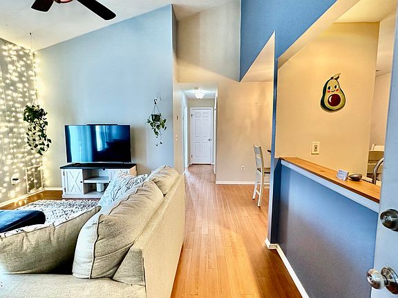 This inviting upper-level unit features 2 bedrooms and 2 bathrooms, offering a comfortable lifestyle with vaulted ceilings that enhance the sense of space. Inside, you'll find a formal dining room perfect for gatherings. The kitchen is equipped with stainless steel appliances, ideal for preparing meals. The master bedroom includes a private bath with a soaking tub and walk-in closet, while the second bedroom is spacious and is across from a full bath. The attic provides extra storage and the balcony offers a private outdoor space for your morning coffee. With parking included, a nearby playground, and an in-unit washer/dryer, this home has everything you need. Conveniently located near shopping, restaurants, and highways! Don't miss out!