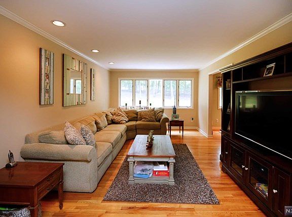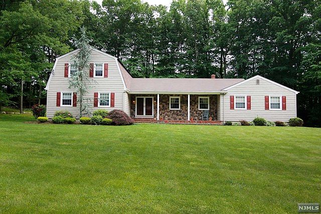 Come and view this spacious and sun filled 5 bedroom, 3 full bath and 2 half bath custom expanded ranch. Situated at the end of a cul-de-sac street on an acre of private property. This home offers many newer updated features through out. covered front porch, enter into the the entry foyer, formal dining room, updated modern eat in kitchen with a center island and granite tops, back mud room with outside entry to large rear deck, powder rm,laundry closet and entry from a 2 car attached garage, continuing on the 1st.floor is the living/family rm, hallway bath/sot, master bedroom with full master bath/ss, and 2 more bedrooms. The 2nd,floor offers 2 large bedrooms and a full bath/ss. The full basement offers a finished recreation room/wet bar, separate office and gym, .5 bath, storage room and utilities. Hardwood flooring, central vac, central air, plenty of closet space & storage space. Close to schools, shopping & NYC transportation.