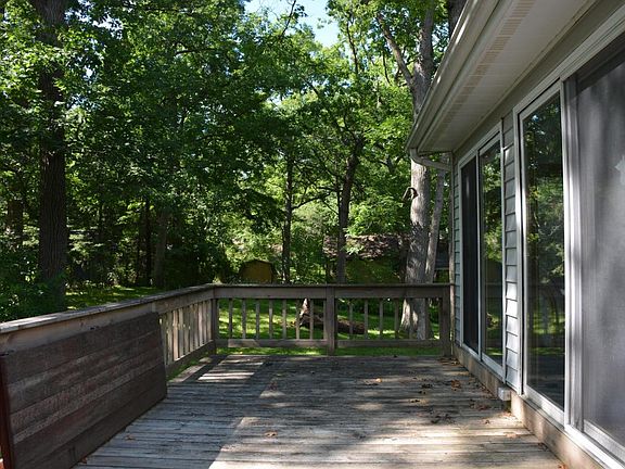 Cedar Point ranch home has open modern layout, beamed vaulted ceiling great room with full wall windows, light kitchen and dining area open to large 3 season porch and large deck. Lower level is finished and spacious with family room and plenty of additional recreation room space. 3 bedrooms, 2 baths and 2 car attached garage. 2 blocks to lake Use any of Cedar Points 8 swim piers and parks.