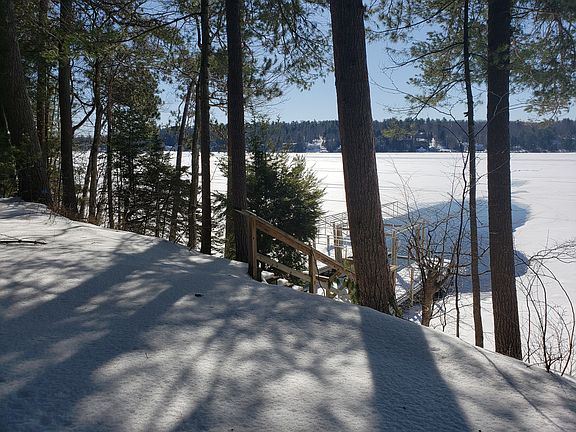 Immaculate log home situated on a 2 acre parcel with 195" of frontage on Winter Harbor of Lake Winnipesaukee. Plenty of room to expand here or keep it as is for your retreat tucked into the pines. Covered boat dock at the water's edge.