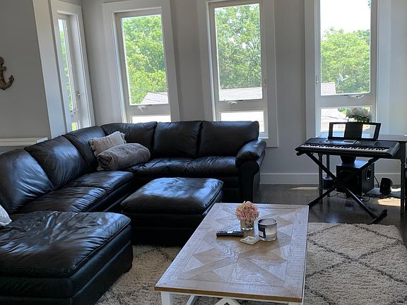 TWO GARAGED PARKING SPOTS. Stunning, top floor, new construction 2BR/2Bath and garage storage! Gorgeous open concept floor plan with lots of natural light in East Boston with a backyard & balcony. Open kitchen with quartz counter-tops, stainless steel appliances and dishwasher. Very short walk (5-7 min) to the Blue Line train and just a 2 stop train ride into downtown Boston! Other modern comforts include central air conditioning, in-unit washer dryer, hardwood floors in all rooms, 2 huge closets (1 walk in closet). Call today! 1st, last & security no smoking dogs & cats allowed (no "dangerous" dog breeds via insurance regulations)