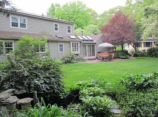 Beautiful 4 Bed 2 Bath expanded Cape located on a quiet cul-de-sac. Pro landscaped property. Private back yard with patio, lighted nightscaping, flowering trees & hot tub. Cherry cabinetry in kitchen overlooks family room with Vermont stone backed wood stove & skylights. Spacious living room with fireplace & formal dining room add to the charm of this home. Large guest room & office with custom bookcase completes the first floor. Short walk to train station and downtown. This home has it all.