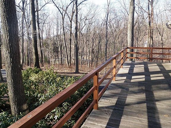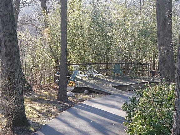 Unique 7.45 acre property offers a peaceful wooded setting in Cumru Township. Conveniently situated near major roadways yet tucked away in a scenic setting. Main floor features spacious living and dining areas with double-sided stone fireplace, beamed ceiling and wrap-around outdoor deck great for entertaining. Kitchen features white corian counter tops and back splash, ceramic tile flooring, white appliances, eat-in area with access to separate enclosed sunroom and small outdoor deck perfect for grilling. Also on main level is master bedroom with updated master bath, one guest room and hall half bath. Lower level is completely finished and includes spacious family room with marble fireplace, wet bar, and access to outdoor patio; small private office; two additional bedrooms; a full bathroom and a large laundry area. This home offers two garages - one attached 2 car garage and one separate detached 2 car garage with workshop area. Plenty of space for any family