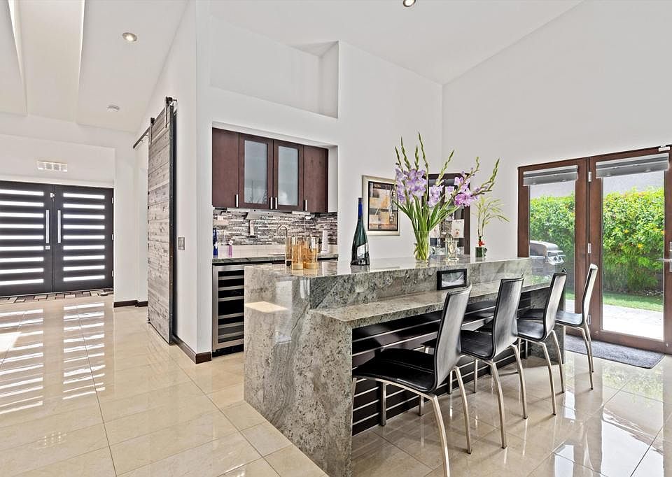 Ready to be wowed? Tasteful elegance, exquisite finishes, and offered furnished if desired. You will find nothing but the finest of finishes and thoughtful details in this updated and re-imagined stunner located in Tamarisk Estates. Tamarisk Estates is an enclave of 22 homes, a gated community, in the desirable Tamarisk area of Rancho Mirage. Quiet and tranquil located on a large interior lot. You enter this pool home through a large front courtyard that opens to the the custom wood and glass paneled double doors to find 3 bedrooms (one being used as an office with a fireplace and closet), 3 bathrooms including powder room with shower. Chef's dream kitchen features Thermador appliances, a microwave drawer, sleek South African cherry wood cabinets and doors throughout, a large island with oversized sink. There is a pantry, waterfall edged granite counter tops, and bar that has a mini-refrigerator, ice maker, wine chiller and sink. Outdoors you will find paver tiles, a newer patio, and a custom designed newer pool. Some of the outstanding features of this exceptional home are 21 Seer newer high efficiency HVAC system including 2 newer furnaces. Epoxy garage floor, high end built-in closet organizers, 2 primary bedroom closets, 4 skylights, soaring cathedral ceilings, colorful and mature landscaping. There is a beautiful custom designed barn door to office/3rd bedroom, 5 TV's, security system, & smart home systems. Low HOA $150/mo.