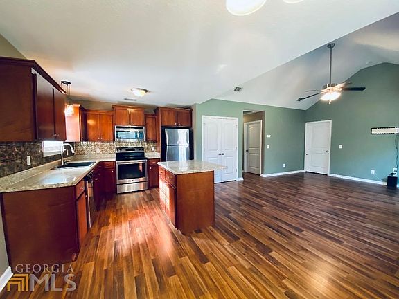 MOVE IN READY! 3 Bedroom, 2 Bath home with split plan. Open living room, dining room, and kitchen with island. High/Vaulted ceilings! Large Backyard with privacy fence, concrete patio, and a 2 car garage! Lot is .69 acres. Call Listing agent to view this home!