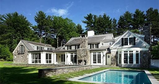 5 bedrooms, 4 1/2 bath Colonial residence underwent a custom renovation and addition in 2001. Main level is graciously designed with a living room open to a family room with stone fireplace and built-ins;a wood paneled library and stone fireplace; and a chef's kitchen with access to the screened-in porch overlooking the professionally landscaped grounds. A first floor bedroom and bath provides guest, in-law or au pair space. Second floor has four bedrooms including a master suite with fireplace. Above the heated garage is a game room complete with wood burning stove. A fieldstone patio with outdoor fireplace overlooks the heated pool and spa. Conveniently located near the Wayland Town Center in the Claypit Hill School district. Easy access to trails and Baldwin Pond.