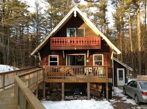 Chalet-style home with great privacy located on large 1.3+ acre lot. Great open concept on first floor with large beams throughout and fully finished lower level family room, den/office, bedroom; permitted pellet stove in lower level to stay; stone hearth; 2-minute walk to Lollipop Beach - water rights. Approximately 15 minutes to Rt 2 in Westminster!