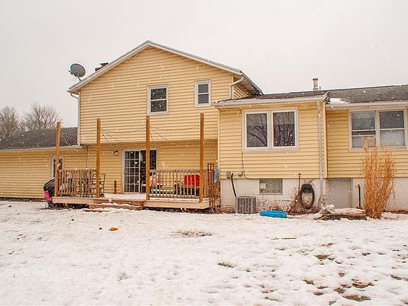 Spacious 1,866 Sq Ft, Vinyl & Brick Split level. Cherry kitchen w/breakfast bar and a dining rm. Family rm with a wood burning fireplace and doors to deck and fenced in yard! Beautiful hardwood floors; first floor den, office or 4th bdrm; two car end load garage; newly updated bathrooms. Walkout basement can be finished as additional family/play room workspace. Entry level den/office or 4th bedroom!