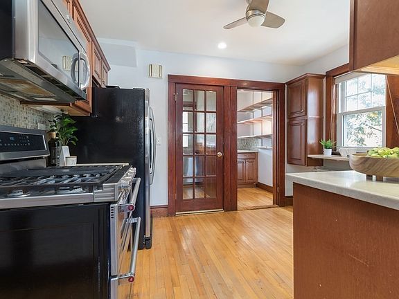 Spacious 2+ bedroom residence w/PARKING & private side entrance located on a dead end street. The foyer acts as storage for shoes, coats, a stroller. Ascend a short flight of stairs to reach the well maintained 2nd-floor penthouse condo, bathed in natural light. Flexible layout offers potential to transform the living room into a THIRD bedroom. The "Middle Room" provides ample space for an office featuring French doors & direct porch access. Original charm and details, including a gorgeous built-in China Cabinet. The kitchen is well-appointed with stainless steel appliances, a double oven, cherry cabinets, breakfast bar, disposal, dishwasher and oversized butler's pantry. A stairwell off the kitchen leads to a 900 sqft vaulted ceiling attic, offering ample storage space. The basement offers 300 sqft of private space, perfect for accommodating a Peloton, treadmill, and an additional refrigerator. Enjoy two private decks and access to the common front and back yard. Healthy reserves!
