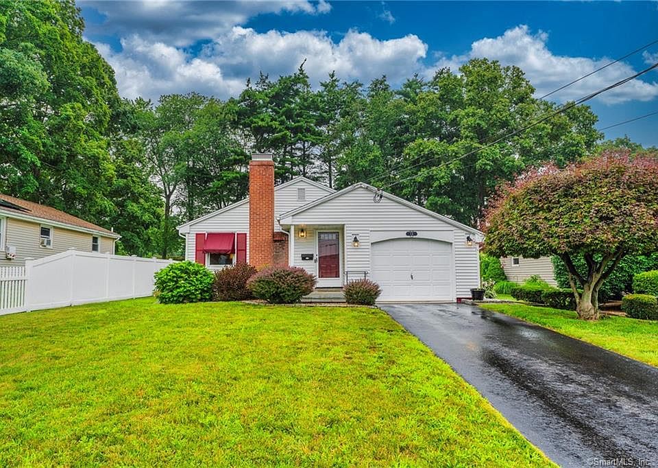Fantastic, tasteful ranch home located on a quiet street! This updated, 2 bedroom, 1 bathroom ranch is ideal for anyone looking to buy their first home, or downsize. It also makes for a great condo alternative! This ranch offers easy living. Walk into the home and enter the foyer, complete with a closet space and door that leads to the 1 car, attached garage. You will then find the spacious living room that features hardwood floors, which carry throughout the entire home, and a classic wood burning fireplace with detailed millwork. The living room leads to the hallway that brings you to the lovely, updated eat-in kitchen/dining area. The kitchen is fabulous with white shaker cabinetry, granite counters, and newer stainless-steel appliances, including a gas range with a chic hood and a sleek subway tiled backsplash. The kitchen has plenty of counter space with its peninsula and has room for a dining table. The 2 bedrooms are large and have great closet space. There is also 1st floor laundry and a full bath at the end of the hallway. The basement offers great storage space and has tons of future potential for additional living space. Other great features of the home include, gas utilities, Central Air, a rear patio and a large, private backyard. A must see!