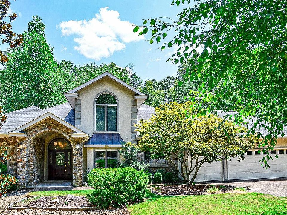 Located in the well-maintained Diamanté Subdivision in Hot Springs Village. This 3 bedroom, 3 1/2 bathroom home features on-suite bathrooms in each bedroom, with the master bedroom boasting two walk-in closets, a jetted tub, walk-in shower, and his and her vanities. The spacious third bedroom doubles as a bonus room or office and is located upstairs. The living room includes built-ins, Trey ceiling, wet bar, and a fireplace with gas logs. The kitchen offers a breakfast bar, island, pantry, and a wall oven, built in microwave, gas stove top, and granite countertops. Also eat in kitchen area. Has a beautiful patio that overlooks a park-like yard situated off the golf course. The property also includes a three-car garage with ample storage space. Two hot water heaters were installed in August 2023. Gold Statue Property.