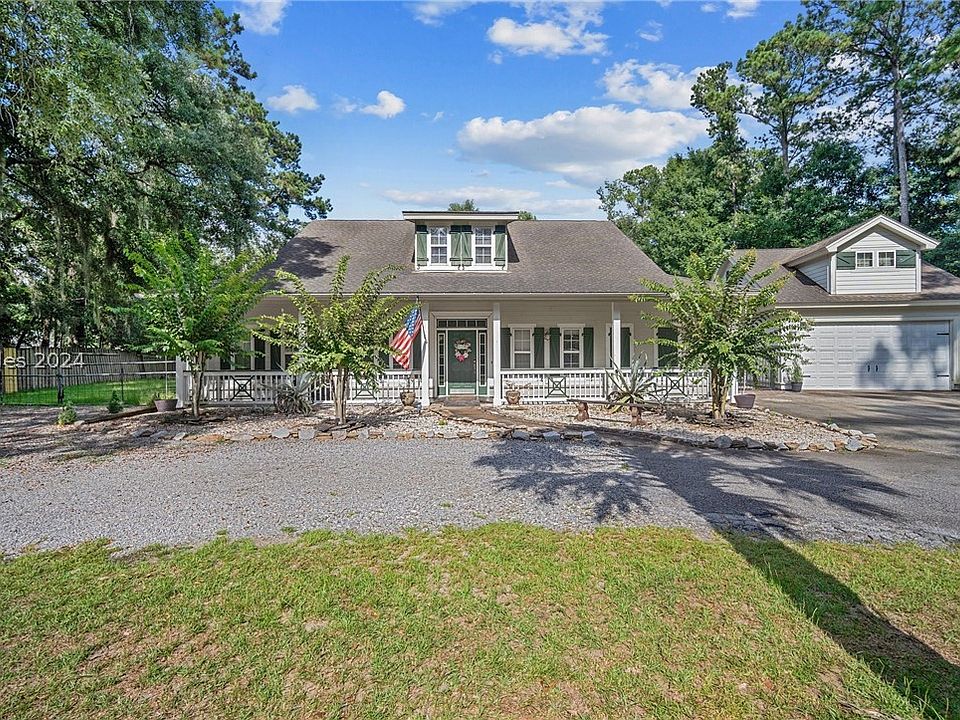 If you've been looking for property in Bluffton with land and no restrictions or HOA fees--look no further! This 4 bedroom/3 bath home has a welcoming front porch that has "Southern Charm written all over it". The interior features double owner's suites, vaulted ceilings, Pine floors, impressive wood paneling, walk-in attic storage and newer kitchen appliances. Cool down in your private pool situated on an over 3/4 acre fenced yard. The property includes a screen porch, hot tub, covered patio and outdoor kitchen area plus a large out-building (currently used as a gym). A large unfinished space over the garage has tons of potential!