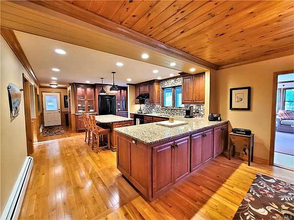 Beautifully appointed Colonial has Spectrum Internet, great cell service and exudes quality workmanship. With upscale finishes, custom details and designers' touch this home is turn key! Amazing chef's kitchen with Cherry cabinets, Quartz counters, stylish back-splash and storage, and an awesome floor plan with formal dining and living rooms, place for a trendy "Kitchen Lounge" with fireplace (or EIK) plus cozy sun-room with radiant heat! Also features: 4th BR/ office, gleaming hardwood floors, artistically tiled baths, master suite with 2 walk-in closets, pocket doors, blue-stone porch and patio, stone walls, perennial gardens, herb garden, screened porch, 2-car attached and 1+car detached garages plus large garden shed. Perched high on a hill, you get astounding mountain views and the most glorious sunsets. This offering is for the pickiest of buyers. Located in the Town of Neversink with low taxes and Tri-Valley Schools and near 2 reservoirs, Eagle habitat, hiking, parks, and more.