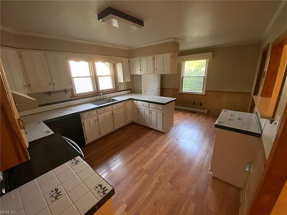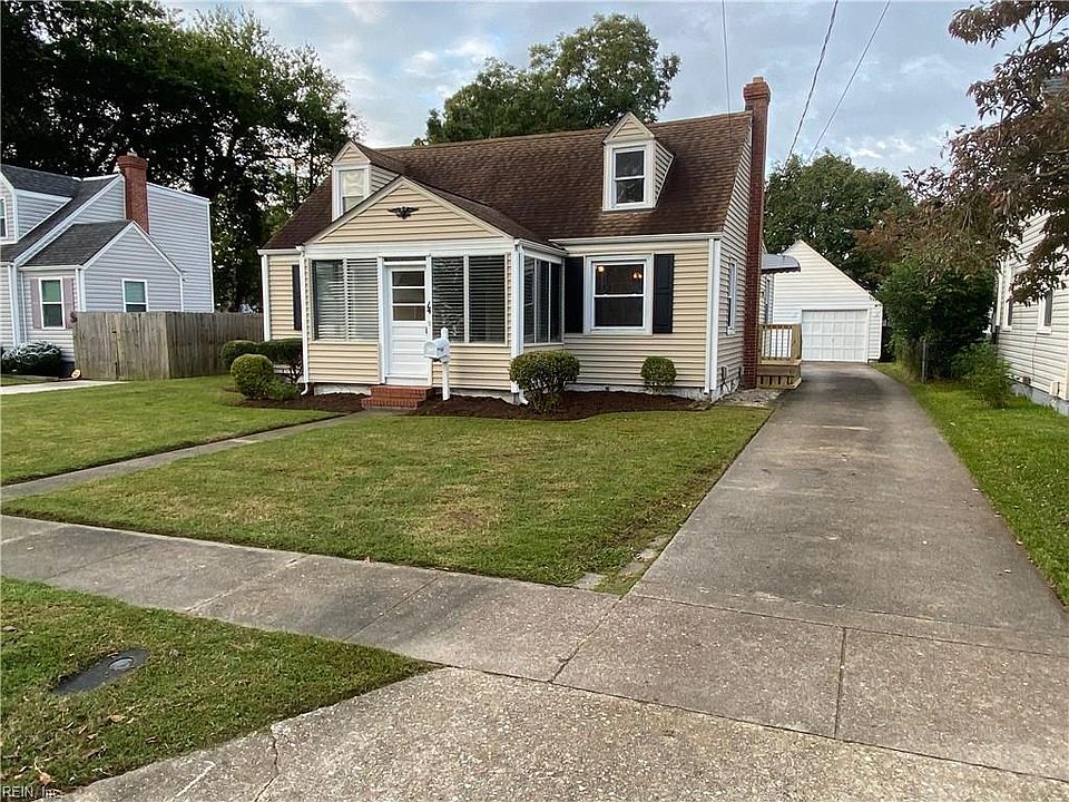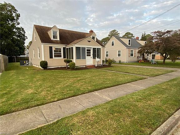 Nice Cape Cod with attractive screened front porch with louvered windows. Lots of hardwood flooring. 2 bedrooms and 1 bathroom down and 2 bedrooms and 1 bath up. Brand new energy efficient HVAC just installed in home including new ducts. Formal dining, living, great room. New range in kitchen with ample storage and breakfast nook. Large utility room. Huge backyard with 2 sheds and an oversized garage that would love a new owner to take to the next level. Ample off street parking, this home even offers a car port that could make for a covered patio.Replacement windows, new rear and side decks. New siding on garage. New vapor barrier in the crawl space. Churchland Schools! Home is not in a flood zone! Come fall in love with Merrimac Point!