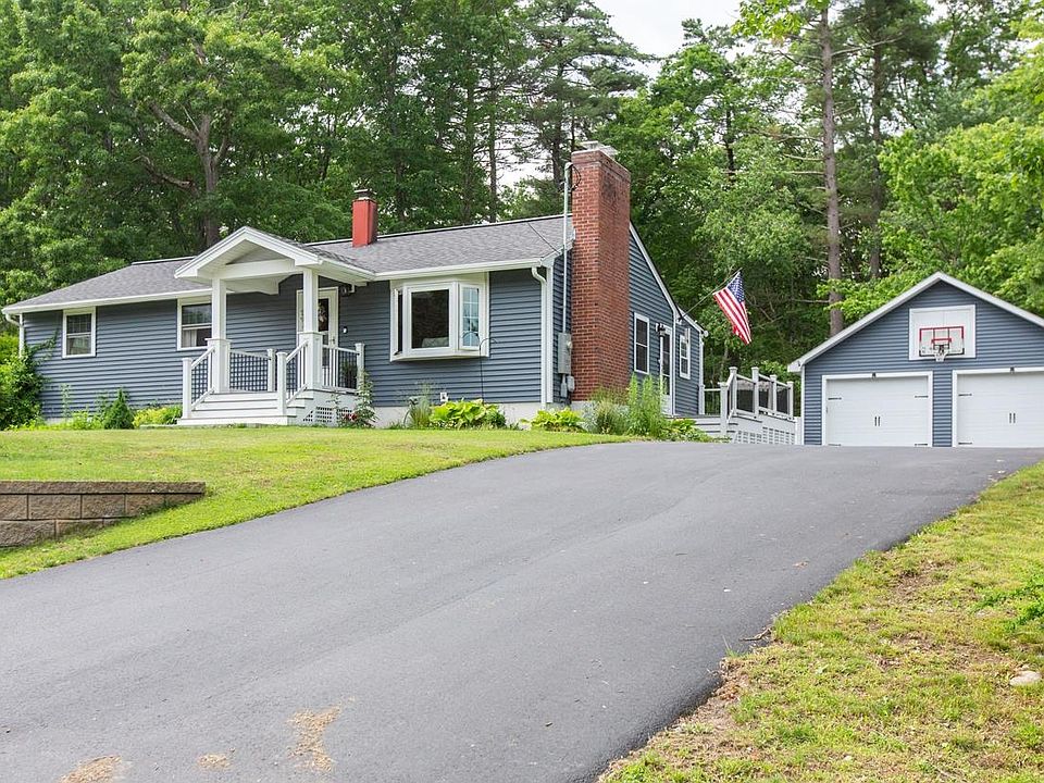 Totally remodeled spectacular Ranch! Walk in to the sunny living room with new Vinyl Plank flooring on the whole 1st floor. The kitchen was updated just a few years ago and the leathered granite countertops are gorgeous! Room at the island or a large eat in with plenty of windows and a pantry to finish it off. The main bathroom has a claw foot tub and tiled shower with dual sinks. Front to back Primary bedroom gives you a ton of space. Another bedroom and an office (no closet but could be 3rd bedroom on 1st floor). All crown molding in the Kitchen, Living room and hallway complete the 1st floor. Walk out the new french doors to the expansive 800 square foot deck with trex decking, hot tub and pergola all in a fenced in backyard. Beautiful spot for entertaining! The basement is finished with a new 3/4 bathroom, a bedroom and a living room and still enough storage space! The 2 car oversized detached garage is perfect for more storage! Walking trails behind the house that abutts town forest, 2 Pellet stoves keeps those heating bills low! Newer windows, hot water heater, vinyl siding, retaining wall, 2 sheds, front porch portico, a generator hookup too much to list! Come see it! Open house Saturday 6/17 at 11:00-12:30 Deadline Saturday 6/17 at 7:00PM********