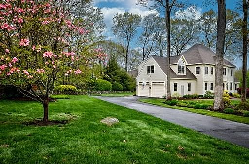 Impeccably maintained gorgeous colonial on beautiful corner professionally landscaped lot in terrific neighborhood. All the spaces in all the right places! Warm kitchen w/ center island, granite counters, & light-filled breakfast nook w/ sliders to deck & back yard. Kitchen opens to stunning cathedral family room w/ stately brick fireplace, cherry floor, & atrium doors to deck. Formal living room & dining room feature hardwood. Mudroom entrance w/ adjacent laundry & half bath. Second floor features lovely master suite w/ updated master bath & walk-in closet w/ built-in closet system. Family Bath, three additional bedrooms, two of which have closet systems & wonderful second floor office w/ built in desk & credenza. Thoughtfully designed finished walkout basement w/ a wall of built-in bookcases. Grounds are beautifully completed w/ mature landscaping w/ stunning curved New England stone wall. Minutes to route 495, rail trail for walking & cycling. Hopkinton top ranked public schools!