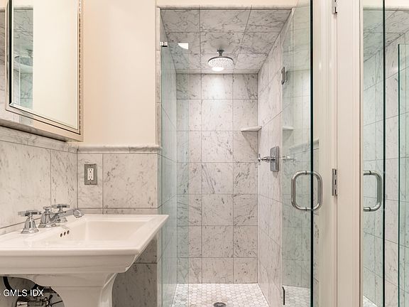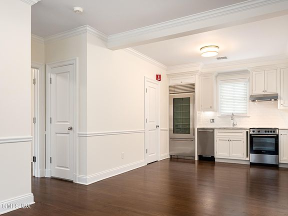 Close to Greenwich Avenue, restaurants and shops, and one block to the train, this apartment offers every convenience. Completely renovated. Beautifully appointed. 2 bedrooms, 2.5 bathrooms features spacious living room, powder room, eat-in kitchen with sub zero refrigerator. 2nd bedroom or office/library with full bath includes custom built, lacquered cabinetry and a 2nd entrance. Washer/dryer in the unit. Storage in lower level. One off street parking space.