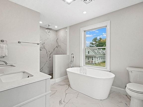 Large rental in top Tufts location off Main St sets this property above all others providing easy access to new Green Line, Hwy, Medford Sq eateries, and shopping. Total gut renovation results in stunning lifestyle choices too numerous to mention. Ideal rental space for so many reasons with 4 levels of spacious dwelling where almost all bedrooms have updated closets and their own bath. The kitchen/dining area provides space for prepping, cooking, and entertaining with a spacious pantry & mud room from the back garage. The living room balances the first floor with outdoor access to the sweet fenced in yard. Head upstairs to TWO master suites with plenty of natural light, storage and full baths as well as an oversized laundry/utility room. Continue to the third floor for two more bedrooms, full bath, great closet space and roof top views. The family room/bsmt is accessed by a Second garage with mud entry, full bath, & storage. Multiple levels provide variable living options for all.