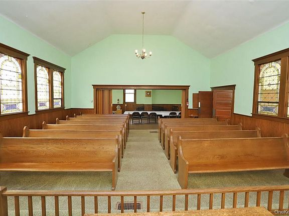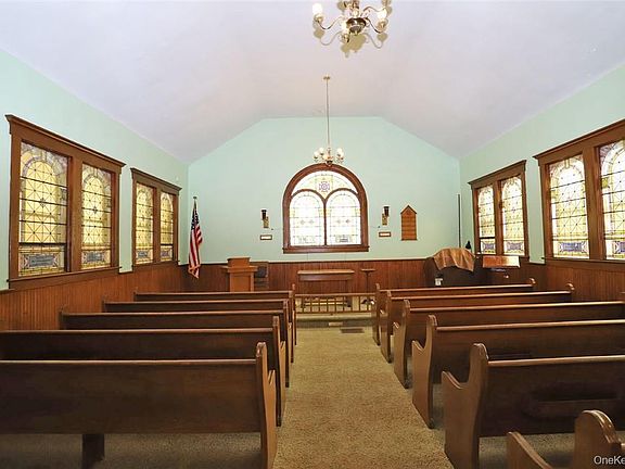 Price drop! Bring your creativity to this classic church in Hankins and give it a new purpose. The building is in very good shape, with a sound structure, beautiful woodwork and soaring spaces. It's perfect for an open-concept renovation. The main congregation room measures 29' x 23' and is suffused with soft light from the stained-glass windows. There's a kitchen and a half bath, as well as a 35'x 16' dining/gathering area. Rich wainscoting, window trim, chandeliers, and built-ins add a warm feel. Oil-fired warm-air heat, on-demand hot water, architectural shingled roof, high-speed cable on the street. The large back yard provides room for croquet, badminton, or other outdoor fun. And you can always ring your own bell! Close to the restaurants, shops and farmers market in Callicoon and the Delaware River. 2 hours NYC. Taxes reflect current exemption; post-sale taxes TBD. Additional Information: HeatingFuel:Oil Above Ground,