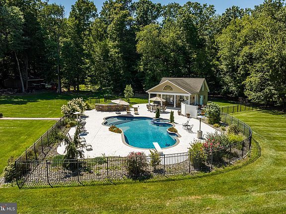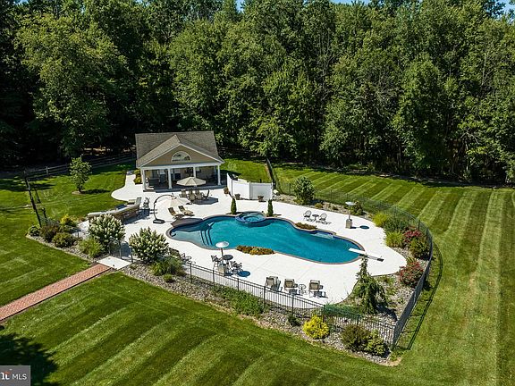 This luxury Country Estate in Doylestown, PA offers a plethora of upgrades and amenities to cater to the most discerning buyer. From its 15+ acres of land adorned with woods, stocked koi pond w/ dock, gazebo and full carriage house and pool all in a prime location, it presents an ideal haven for those seeking an upscale lifestyle. As you step-into the home you're greeted by a grand vaulted ceiling foyer adorned with tiled floor with local Mercer tile accents . This unique expanded Cape Cod offers such versatility and open concept living area , creating an inviting space for relaxation and entertaining. The main hallway to the ledt leads to bedroom wing and bathrooms to the right leads to the formal living room which boasts stunning moldings and intricate details, with built in bookshelves surrounding a wood burning fireplace then to the large formal dining room complete wihth moldings and hardwood flooring. The heart of the home lies in the gourmet vaulted ceiling kitchen, designed to delight any culinary enthusiast. It showcases, exposed barn beams with 2 skylight windows , high-end stainless steel appliances, including a range and double ovens, along with granite countertops, a center island with a breakfast bar, ample storage space, and a stylish backsplash. For cozy evenings, a massive family room features a fireplace that provides warmth and comfort. If you require a quiet space for work or study, the first floor private study/home office offers the perfect retreat. Just off the kitchen is the Florida sunroom overlooking your expansive decks and back yard oasis! The luxurious owner's suite serves as a tranquil sanctuary with a spacious bedroom and scenic views from your private brick patio. The primary bathroom is designed for pampering, featuring a sumptuous soaking tub, a walk-in shower, and dual vanities. A large double walk-in closet provides ample storage space for your wardrobe and accessories. The back staircase up to the private office is great for the stay at home entrepreneur. Two large additional bedrooms and full bath found on the main level as well. On the second floor you will find 2 Additional well-appointed bedrooms and a Jack & Jill bathroom to ensure that family members and guests feel at home. The thoughtful layout of the residence caters to both privacy and togetherness. There is also a bonus room for a multitude of uses that can be accessed from the second floor office leading from the master bedroom. The finished lower level offers additional living space for entertaining, complete with a recreation pool table room . Outside, you'll find an oasis awaiting you. The professionally landscaped backyard is ideal for outdoor gatherings. The pool area is fantastic for outdoor entertaining and dining as it has a full kitchen seating area. The carriage house with its own HVAC offers full kitchen, laundry & vaulted studio living area, perfect for loner term out of town guests! The 1600 square foot additional outbuilding offers a many opportunities for businesses , with a UPS loading dock garage door, fully carpeted and finished inside for processional use or simply storage. It also is fully heated and cooled( although not used currently). Convenience is a key feature of this property, with local amenities, shopping centers, and dining options just moments away. Parks, schools, and recreational facilities are within a short distance, and commuters will appreciate the easy access to major highways and transportation options. The home is located close to Downtown Doylestown, Peddler's Village, and New Hope. Don't miss the opportunity to own this exquisite property in Doylestown township , PA. Schedule a private viewing today and imagine yourself living a life of luxury in this stunning home.