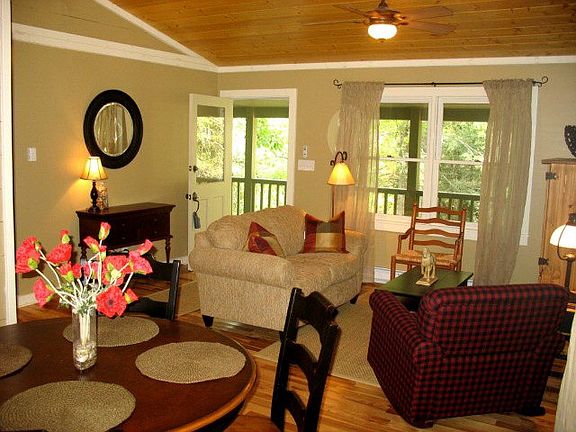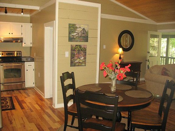 Charming cottage just 5 minutes from the center of Cashiers. Stream and lush rhododendron is the view. Rock away the afternoon on this home's spacious covered front porch and relax to the sounds of its babbling creek. Completely remodeled home is charming and affordable!
