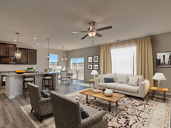 If you are looking for a sensible main-level living layout that has even more to offer than the average, The Everest could be right for you. As you walk through the front door, your eyes are instantly drawn to the bank of windows in the family room. Plenty of natural sunlight brings life to this space and spills into the open floor plan kitchen. Preparing food is a joy with abundant counter space and modern appliances. The sliding glass door in the breakfast nook lets in even more light and makes it easy to enjoy your morning coffee indoors or outdoors. The main-level primary suite is ideally situated adjacent to the family room. The primary bathroom has a grand feel with dual sinks and roomy closet. Two more bedrooms, a full bath and laundry room complete the well-designed main floor. But for those who want that little something extra, the second-level media or bonus room is the gem you've been looking for. Would you use it as a home office? Yoga studio? Movie theater? Make it your own by making The Everest your home.
