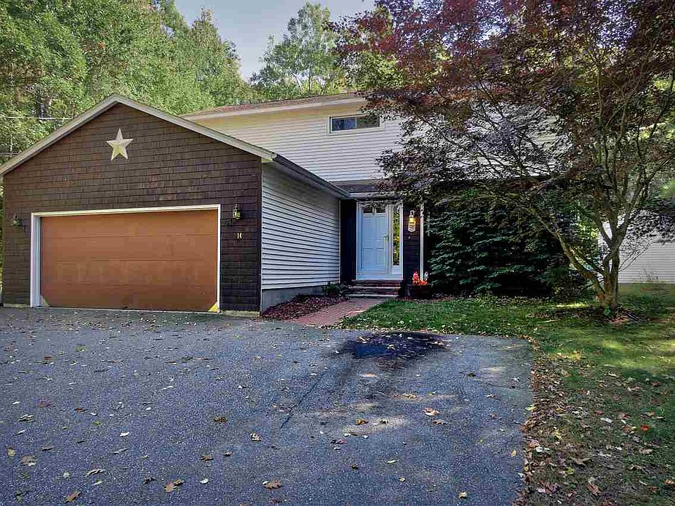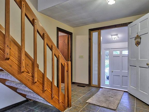 Custom built home on a nice private lot! As you enter this home you'll find the open concept first floor with plenty of natural light thanks to the skylights. There is a bedroom or office, the living room with a brick hearth and wood stove, 1/2 bath with laundry, kitchen and dining area all on the first floor. Sliders out to a huge covered porch overlooking the private back yard. The second floor contains three additional bedrooms, the master with a private bath and walk in closet and two other bedrooms each with access to the full bath. The back bedroom also has a bonus sun room and deck looking out over the yard. This home has a full unfinished basement and a 2 car garage. It has been freshly painted, has new carpeting in all the bedrooms, roof and the heating system have been replaced. Nothing to do but move in your furniture!