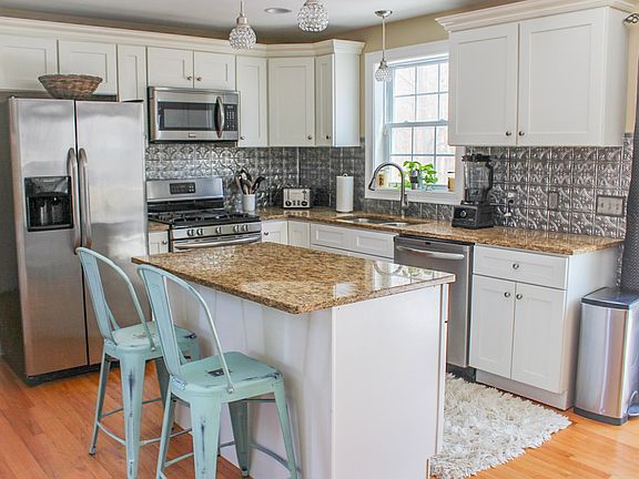 Banna Estates, Seekonk. Stunning Colonial boasts custom touches & contemporary style throughout! The Cathedral entry unfolds into expanses of gleaming hardwoods & breathtaking high ceilings. An impressive open floor encompasses the 1st level. The KIT features an island w/seating, granite, stainless appliances complimented by an antique tin-style back splash. Breakfast nook w/ custom-built bench seating. Elegant formal DR. Great Room features a wall-mounted HDTV w/ reclaimed wood surround. The 1st level includes a beautiful half-BA w/granite. MBR includes an en suite w/ double sinks & granite, plus WIK. The two remaining BRs share another beautiful full BA, also w/ double sinks & granite, plus a finished bonus room. This bright, well-designed, move-in-ready home boasts a long list of amenities including solar, central air, security, over-sized two-car garage, deck, fire pit, LG yard, system. On an expansive wooded lot, peaceful cul-de-sac, exceptional subdivision.