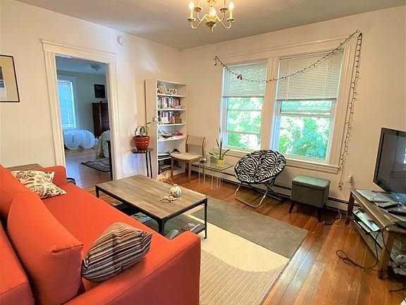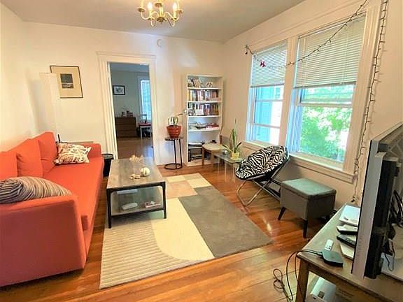 Bright, sunny and spacious. This 1100 sqf 2 bedroom unit offers huge eat in kitchen, large bedrooms with plenty of closets, separate office space, in unit laundry, private balcony, hardwood floors throughout. Cozy shared yard. 2 car parking including one car garage. On a quiet street. Close to Arsenal yards, Mass pike and Storrow drive. Available for immediate occupancy.