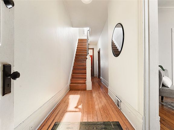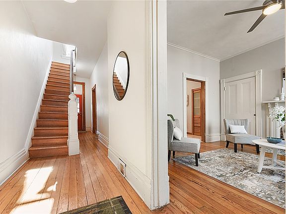 Live your city dreams in Troy Hill, the little village with a view! Pause in the vestibule to enter a hall with 10ft ceilings and a magnificent Victorian paneled staircase. Light streams down stairs as you survey restored pine floors and a living room mantel complete with original hearth tile - do the colors remind you of the ice cream you’ll be eating on the stoop very soon? A large eat-in kitchen is charming as-is, or is it the right canvas for your fantasy kitchen? Upstairs, 2 adjoining rooms offer the potential for a bright office suite or a luxurious full-room closet. And the new bathroom! She’s a beauty. After a steam in your spacious shower, your morning routine can live large on the wide vanity. Journey up again to a 3rd floor workshop/bedroom/future suite with skylights and a large storage closet. Start a container garden on the patio or dig into a community plot a block away! AC, new windows, and a new roof complete the package. You’ll find a (heck of a) lot to love here!