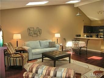 Don't Miss! DYNAMITE, MOVE-IN Ready Condominium in the Desirable Chapter 1 Community with Lake, Pool, Tennis & More! GORGEOUS Brazilian Cherry Hardwood Floors! Neutral, Light & Bright! Vaulted Great Room & Dining Room with 4 Skylights! Vaulted Kitchen with Newer Stainless Steel Appliances, Large Sit-Down Breakfast Bar, Tiled Counter Tops, Track Lighting, Updated Cabinetry Hardware & More! Great Room with Wood Burning Fireplace, Newly Remodeled Fireplace Surround and Custom, Tiled Hearth PLUS Sliding Door Access to Large Deck OVERLOOKING the TREES! Great For Entertaining! Vaulted Master Bedroom with Large, Walk-in Closet and Pocket Door Access to Master Bath with Skylight, and Oversized, Step-Up Tub and Shower! 1 Car Garage with HUGE Storage Area! Excellent Location to Highway 40/64 Access, Chesterfield Valley, Shopping, Restaurants, Katy Trail, Busch Wildlife & More! Refrigerator, Washer and Dryer to Remain!