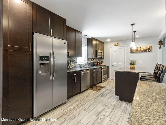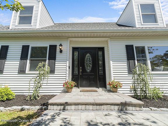 Vacation Where You Live! Custom center hall colonial situated at the end of a private cul de sac in a quiet neighborhood. Updated kitchen, shaker cabinets, stone countertops, contemporary light fixtures, stainless appliances and and oversized center island. Bright open floor plan with formal dining room and family room off the kitchen that is perfect for entertaining. Bonus room on the first floor with French doors that could be used as a formal living room, home office or converted to a 4th bedroom. Remodeled powder room completes the lower level. French doors off the kitchen open to spacious deck, custom paver patio, swing set, in ground pool with waterfall and Tiki bar. Upstairs Primary bedroom with ensuite bathroom and large closets. Two large bedrooms and additional full