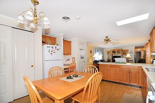 Beautiful! Very inviting open floor plan. Many newer features. Eat in kitchen with breakfast bar. High end laminate flooring throughout. This home is sqeaky clean. Newer upgraded shower with seat. Wonderful 3 season sunroom. 55+ community.
