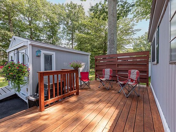 Beautifully updated 2 bedroom, 2 bath manufactured home on a large corner lot in the well-maintained Maple Leaf Park. Whether you are enjoying the private wooded lot on the newly finished oversized porch or cozying up to the fire in the large living room, this home has so much to offer and is move-in ready! Enjoy single level living throughout. Oversized shed offers plenty of additional storage space. Property is conveniently located near all that the seacoast has to offer and 10 minutes to the beach! Be sure to watch the attached video tour. 10/8 OPEN HOUSE CANCELLED. UNDER CONTRACT.