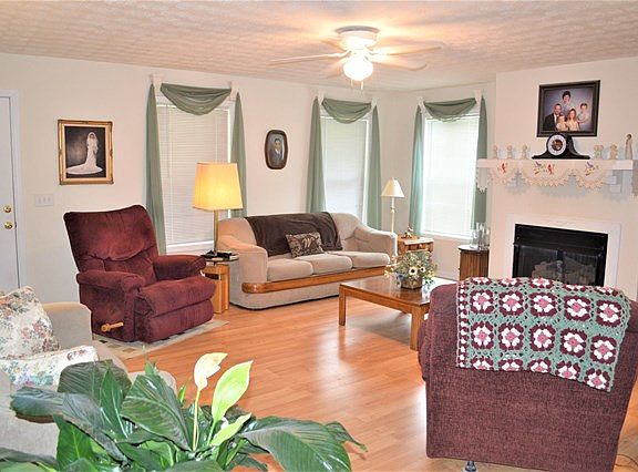 Well maintained 3/3 in nice community. Nice nearly flat yard, room for a garden, Full covered porch on front and back. Back porches up and down. Gas log fireplace, easy clean windows, 2x6 walls,nice kitchen with plenty of counter space, Main level Master suite with large bath. Upstairs features two nice sized bedrooms, full bath and an area in between bedrooms that is currently used as a computer room/office but could also be used as play/TV area. Ceiling fans in all bedrooms. Partially finished bath in DRY basement, ceilings are dry walled, daylight on 3 sides. Two car garage in basement.