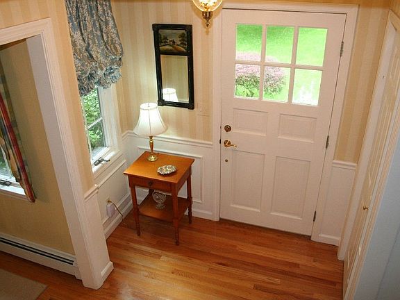 Sundrenched Colonial filled with charm. Interior boasts wainscoting crown molding and Anderson windows throughout. Family room has vaulted ceiling, built-ins, custom fireplace and French door to farmers porch. Gracious eat-in kitchen has white cabinetry, Corian counters and French door sliders to large deck overlooking private, level yard. Upper level boasts large master bedroom with picture window, bookshelves, window seat and custom master bath. Three large bedrooms and one additional full bath complete the upper level. Finished lower level media area with laundry, separate office and walkout entrance to back yard. Enjoy Ridgefield Living at its Best in This Picture Perfect Home.