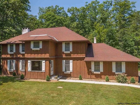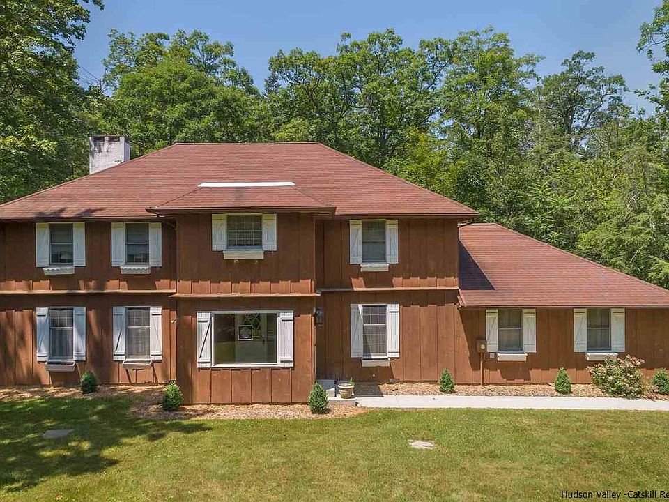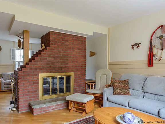 If it is space you want and you want it in Woodstock, this is the house for you. A nearly 3,000-square-foot colonial, solidly-built and durable, it features a unique double-sided freestanding fireplace separating two living areas. Plenty of room to relax, and that includes a screened-in back porch. But what is very unusual for Woodstock is having five bedrooms, one ensuite, all of them extremely generous in size -- and perfect for an AirBnB rental. Space-seekers will enjoy the big eat-in kitchen and separate dining room and a spacious two-car garage, lots of closets, and a back deck in addition to the screened-in porch. The one-acre lot offers privacy in the back, easy maintenance, and some beautiful rock outcroppings. The setting is a lovely, quiet community just minutes from the heart of Woodstock village. This is a very good value for the space and desirable location.