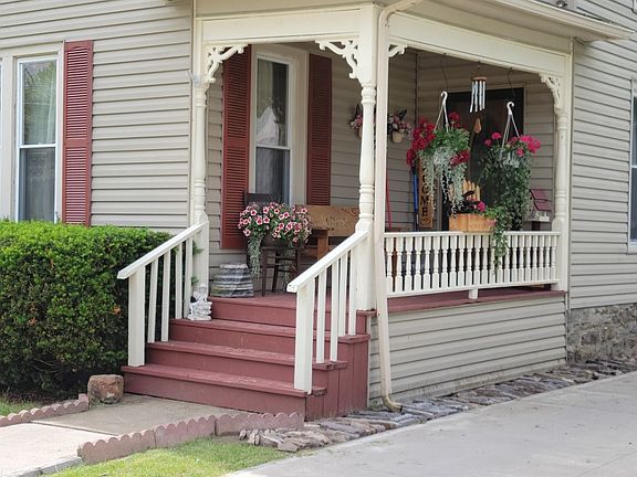 Beautifully remodeled home in town. Classic features with modern updates throughout. Kitchen features Hickory Cabinetry, nice breakfast area & access to covered side-porch. First floor bath with washer & dryer. First floor rooms with high ceilings, updated windows, hardwood floors include living room, formal dining room & first floor bed., Upstairs opens into large landing, 3 bedrooms, 1 bath & great natural light. Outside, the adorable shed features a bar area, small one-car garage & concrete drive. Newer 200 amp service, gas boiler, insulation & Pex plumbing.