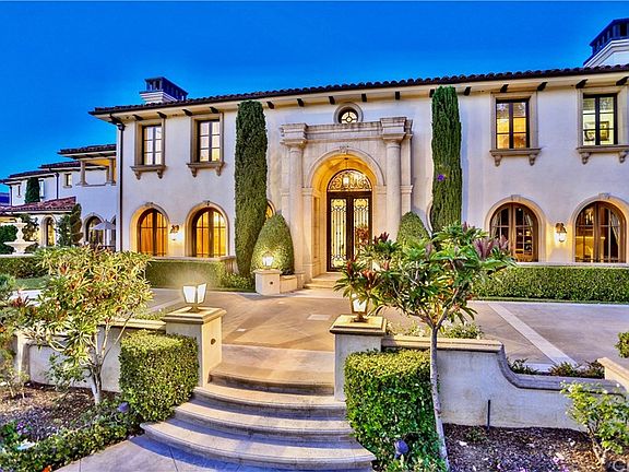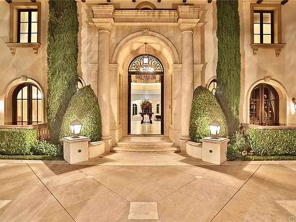 This breathtaking, beautifully designed home with an award winning floor plan sits on more than one acre. The stunning villa makes a bold statement with a grand entry that opens to a dual staircase with limestone slab steps, Venetian plaster walls and a spectacular chandelier. Equally stunning is the formal living room featuring fine silk draperies, a gorgeous stone fireplace and French doors that open to a tropical backyard paradise. Built for entertaining, this home includes a formal dining room that seats 20, an in-home theater and a pool table room with bar. The large family room boasts a beautiful stone fireplace and bar, and the chefs' kitchen has an eating counter space and a charming nook with a view of the spectacular pool. The fun continues outside, where residents and guests can take a dip in the rock pool with grotto and slide waterfalls or engage in friendly competition on the sports court. Because of the home's grand size, several features are built-in to create a convenient and practical space. There is an elevator, master suites upstairs and downstairs as well as upstairs and downstairs laundry rooms. One of the most charming features of the home is the "bunk room" with 6 built-in double bunk beds and French doors that open to an expansive balcony. The other 8 bedrooms in the house are all en-suite. Additional unique features of this home include a temperature-controlled wine cellar, gym, Crestron Smart system and gated motor court with 6 oversized garages.