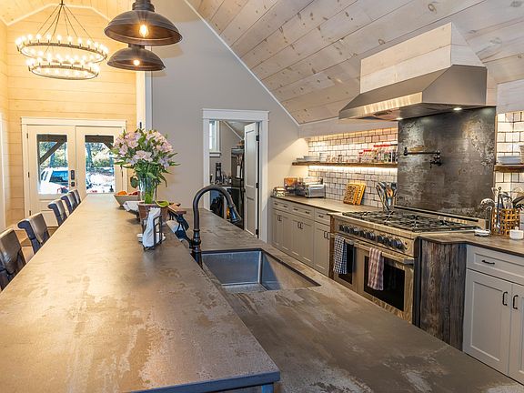 Expansive countertopsFull outdoor kitchenSoaring barn beamsCustom finishesMultiple sitting areas