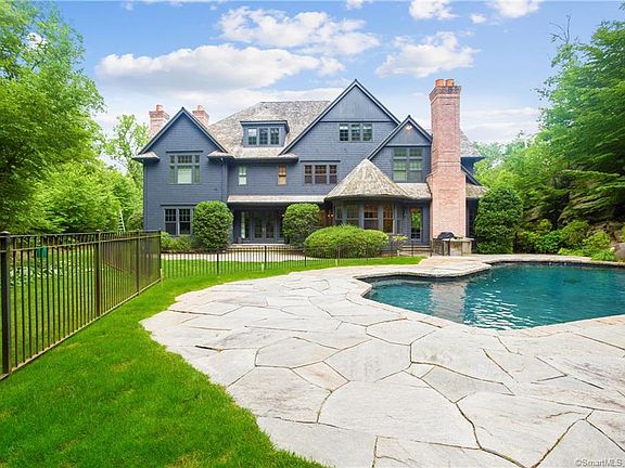 Sophisticated stone and shingle style manor embraces today's living. On a quiet cul-de-sac set amid gorgeous landscaping, you have found your oasis. A sun-filled custom interior offers timeless features; rich inlaid flooring, hand selected marbles, custom painted library, elegant lighting, and 4 fireplaces. Step outside to a covered veranda with blue-stone terraces and pool with spa & waterfall. 6 en-suite bedrooms; luxurious master wing with his/her dressing rooms and radiant-heated bath will have you feeling as if every-day is a vacation. Large finished lower level with playroom, extra bed/bathroom and laundry. Finished 3rd floor offers further flexibility for guests or family with gym/playroom and full bath. Heated 3 car garage.